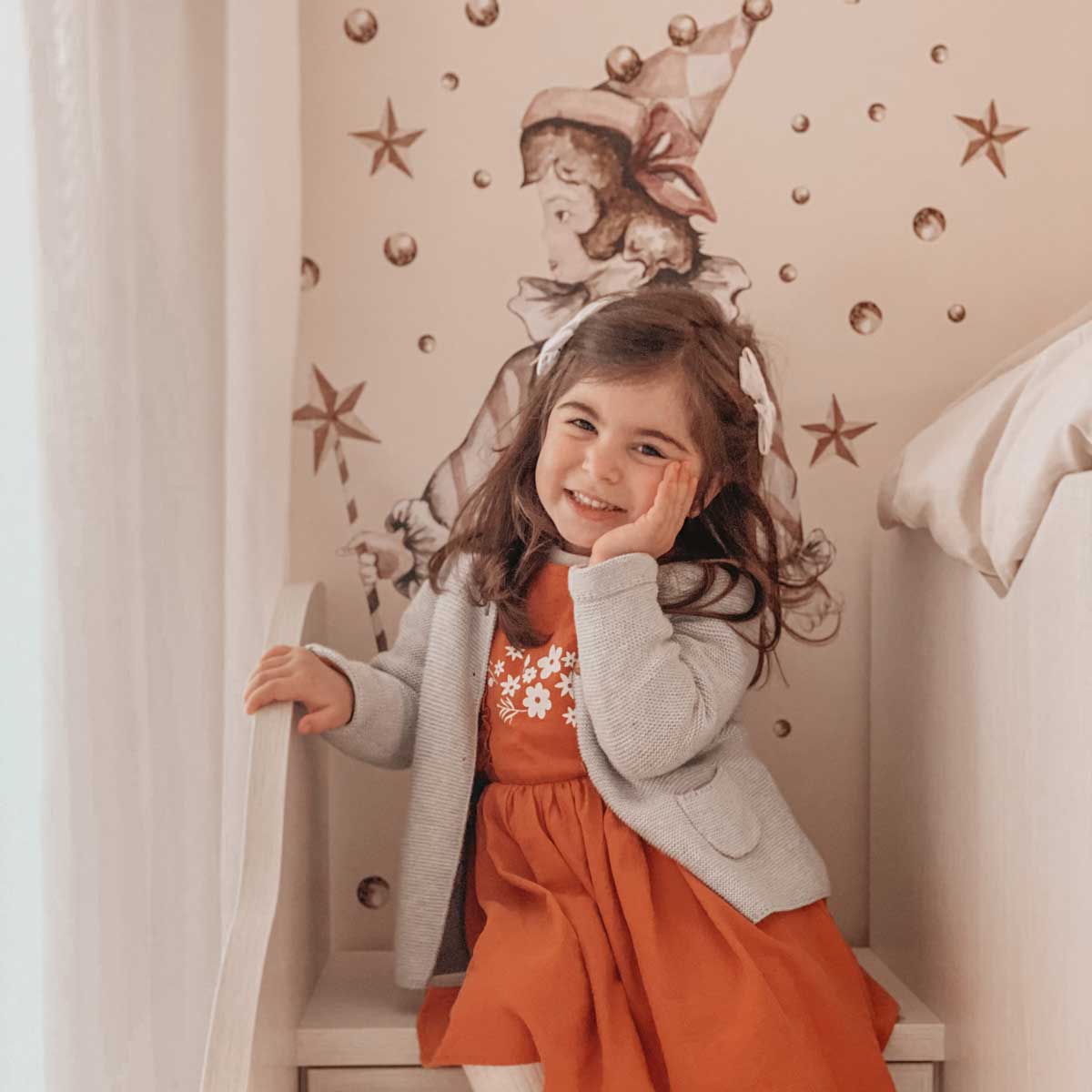 This collection includes French Pierrot, a rocking horse, wooden blocks, spinning tops, leather roller skates and hula hoops! You can even find our beloved rabbit in the role of a magician in it.