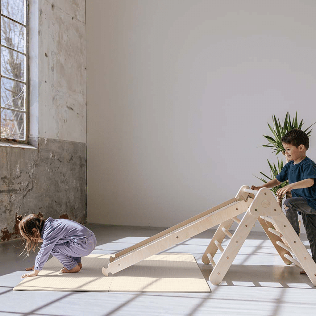 Pikler premium climbing triangle with slide/climbing slope - natural