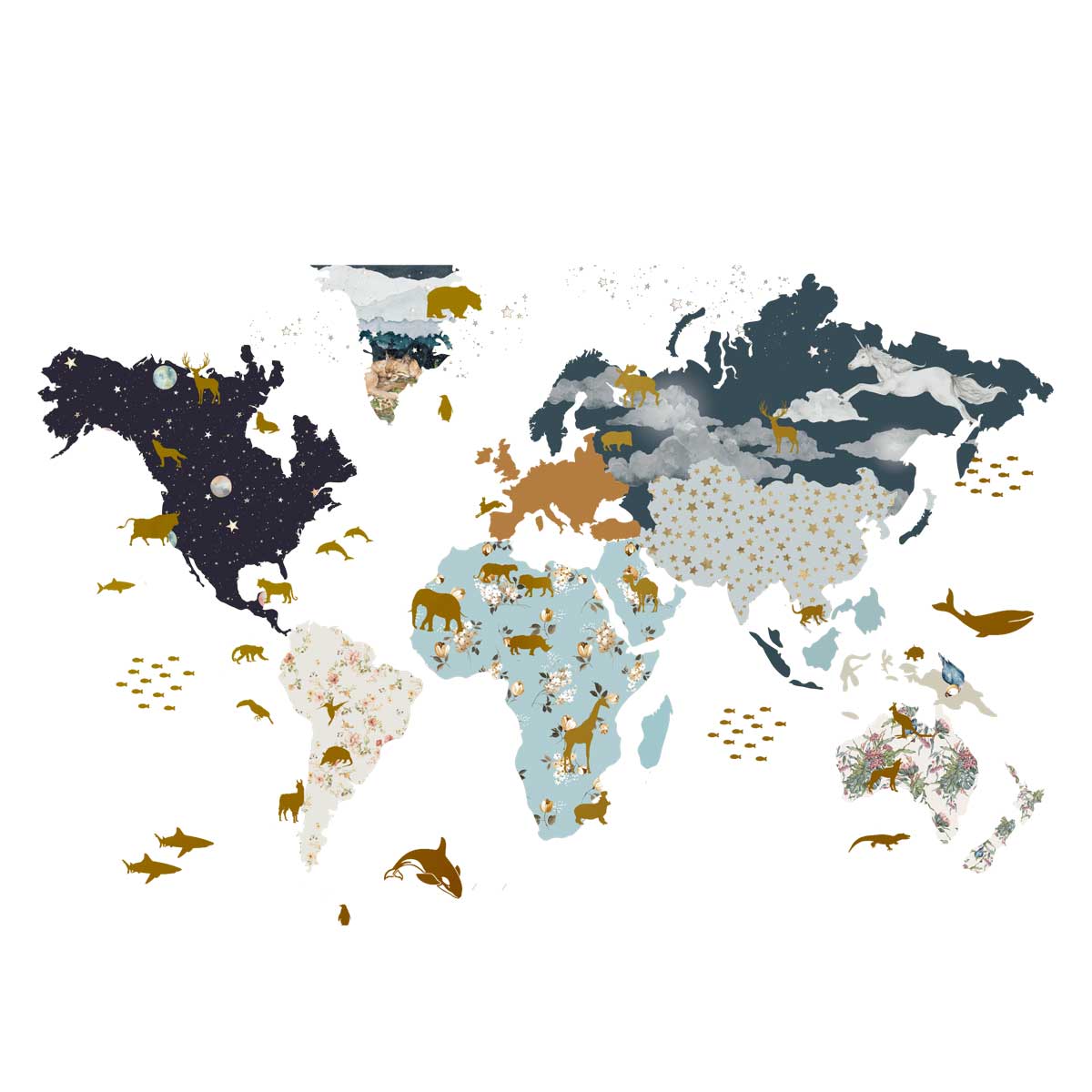 The map is a large coloured sticker with an educational function. Children can explore the world and place animals on their continents… Simply put: geography lessons guaranteed!