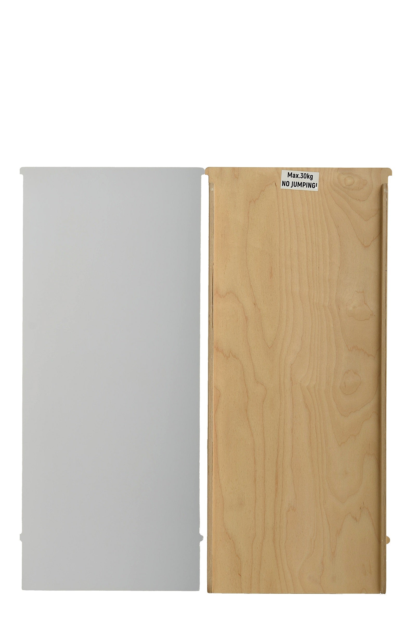 The slide board can be installed vertically, facing either side, at the front or back of the tower, thanks to its clever design. This way, it also closes off the tower entrance, allowing for creative chalking and writing!